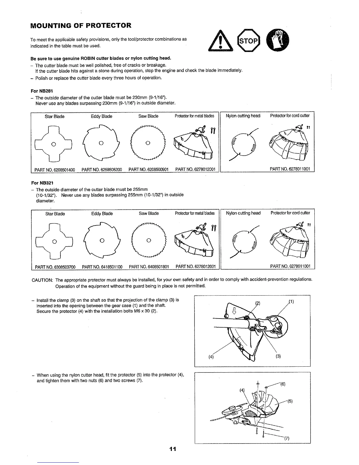 Robin NB321 - Protector Mounting Instructions; NB281 Protector Mounting; NB321 Protector Mounting