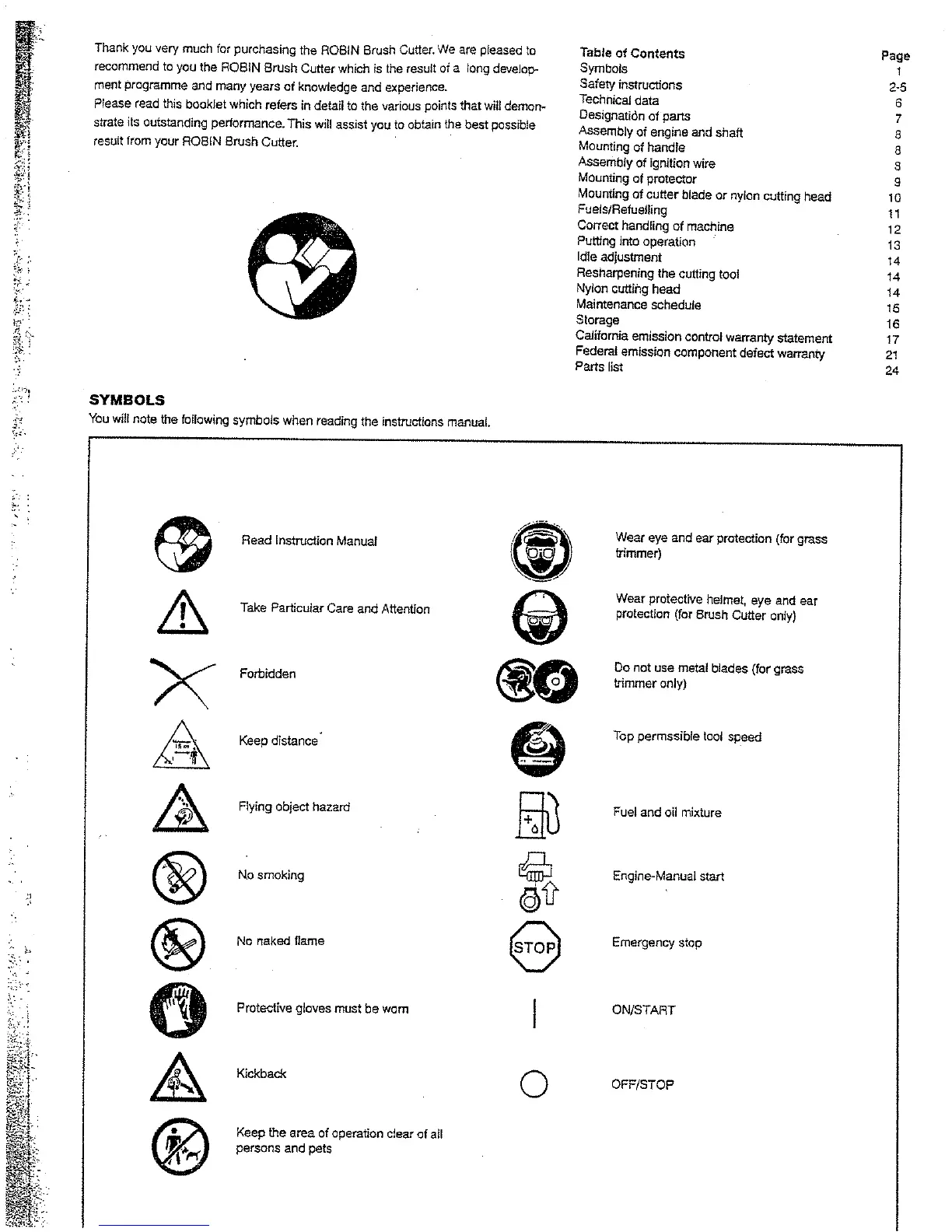 Robin NB351 - Table of Contents; Symbols