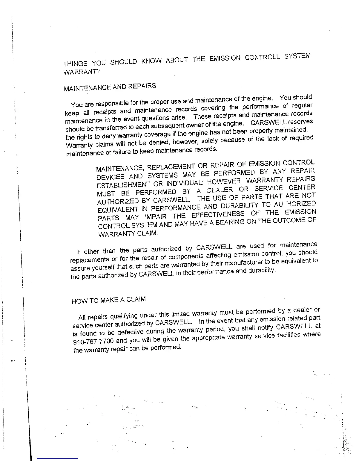 Robin NB411 - Emission Control System Warranty; Maintenance, Repairs, and Claims Process