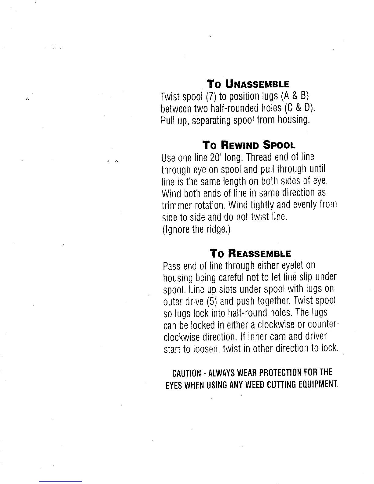 Robin NBF252 - Spool Maintenance Procedures; To Unassemble the Spool; To Rewind the Trimmer Spool; To Reassemble the Spool