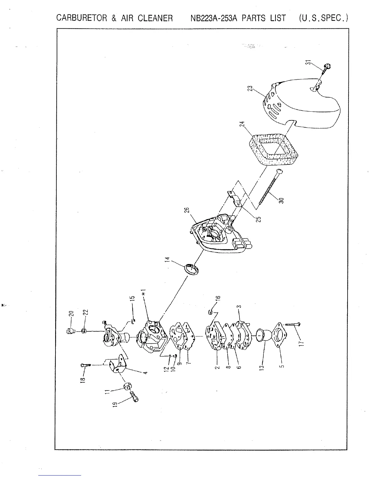 Robin NBF252 - NB223 A-253 A Carburetor & Air Cleaner Parts List