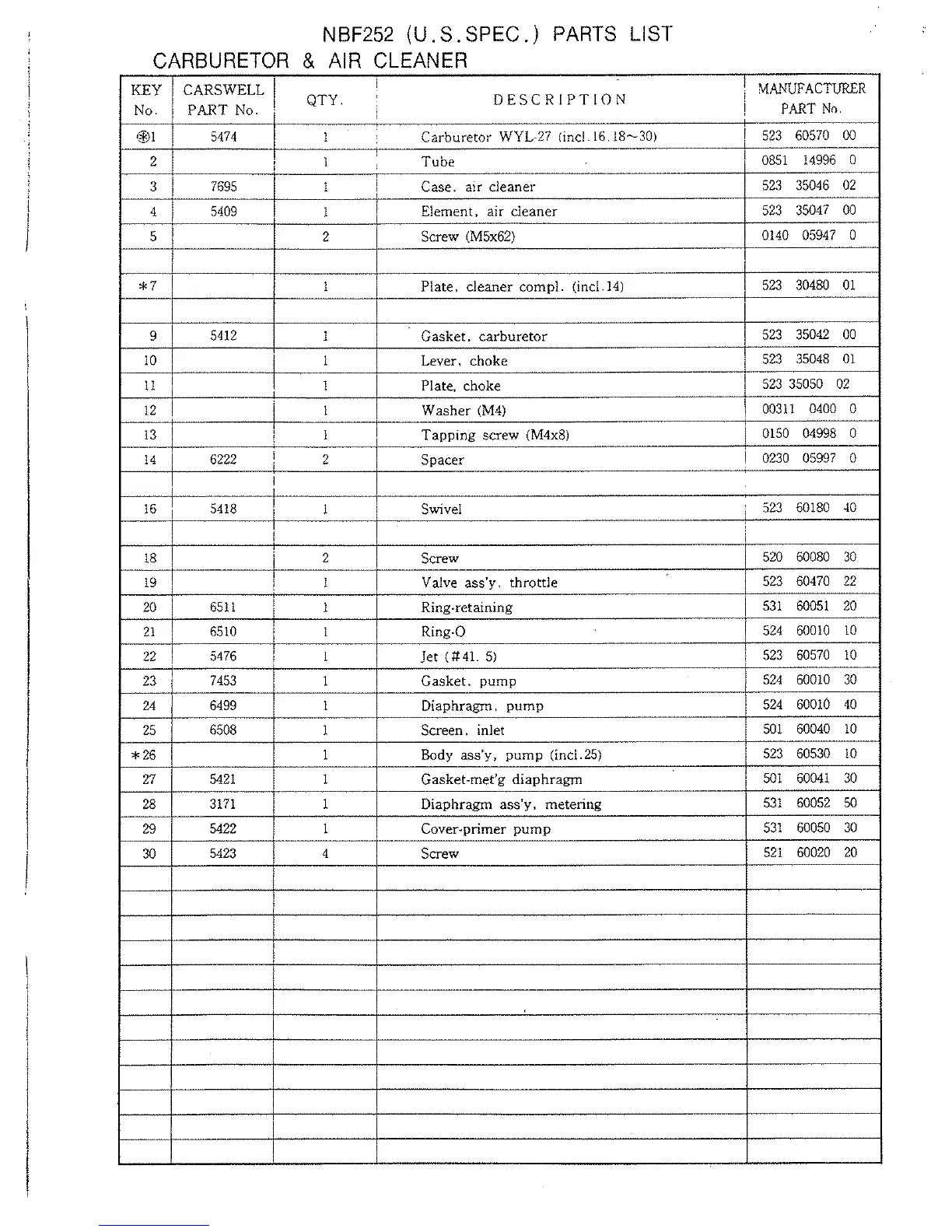Robin NBF252 - NBF252 Carburetor & Air Cleaner Parts List (Continued)