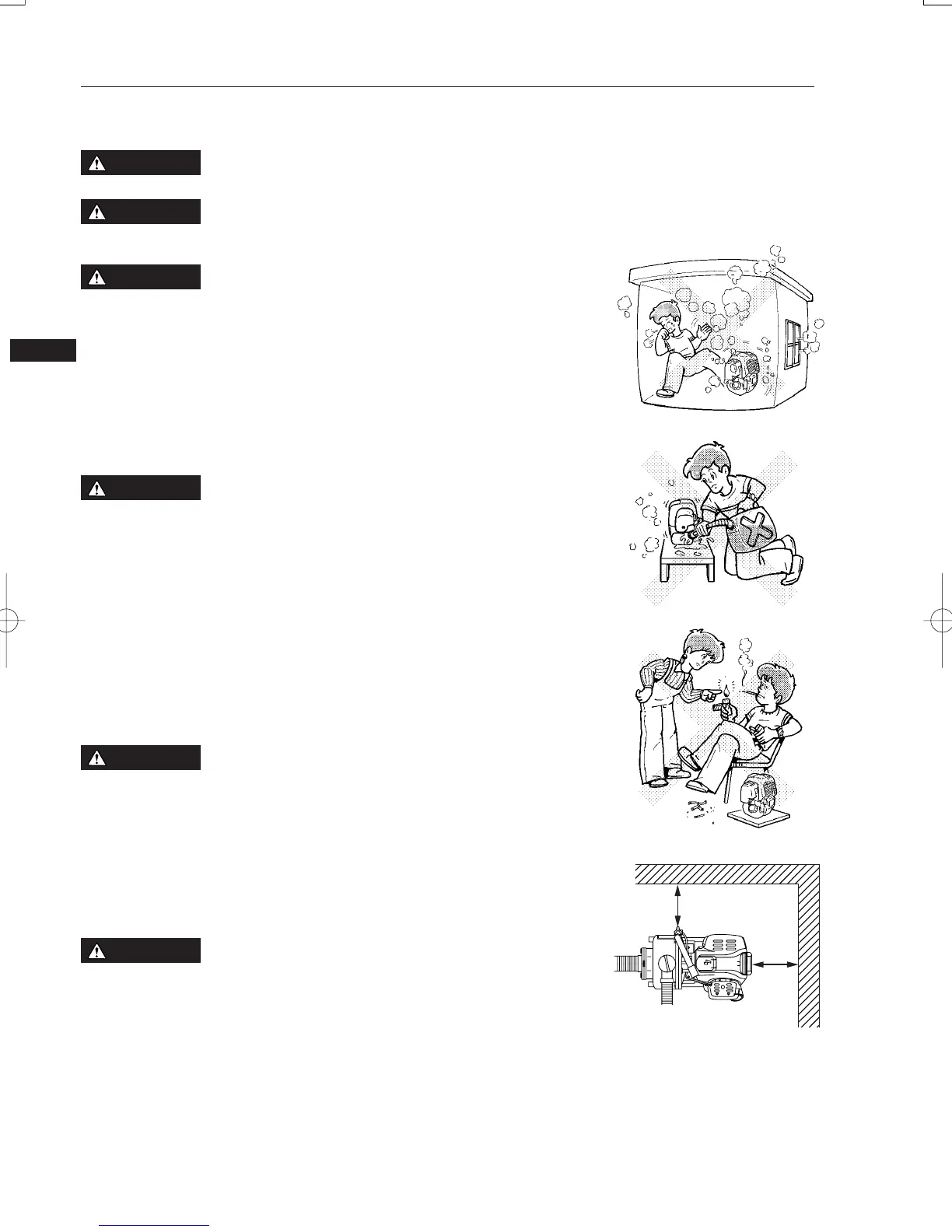 Keep cooling air intake (recoil starter area) and muffler side of the engine at least