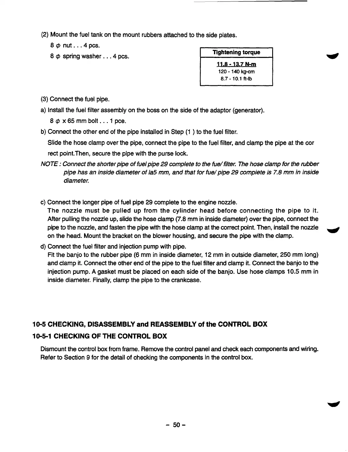 a) Install the fuel filter assembly on the boss on the side of the adaptor (generator).