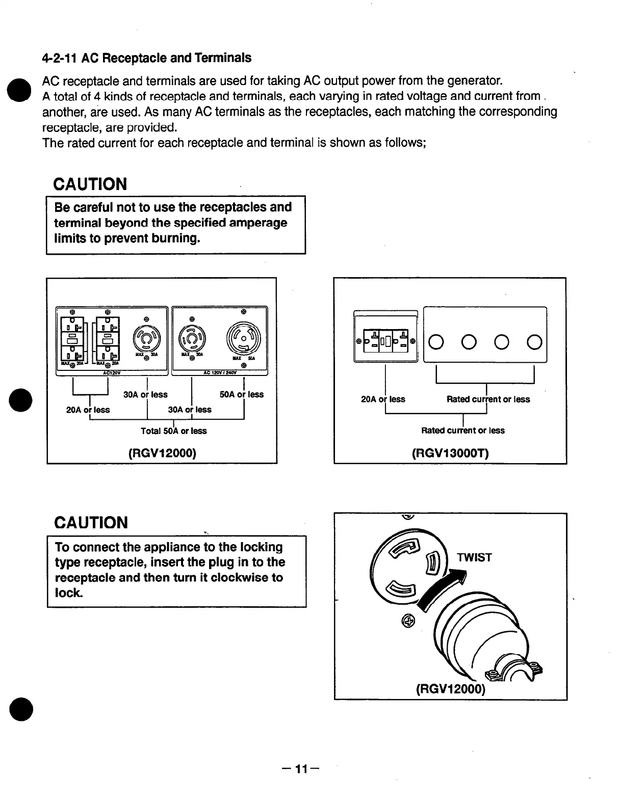 AC receptacle and terminals are used for taking AC output power from the generator.