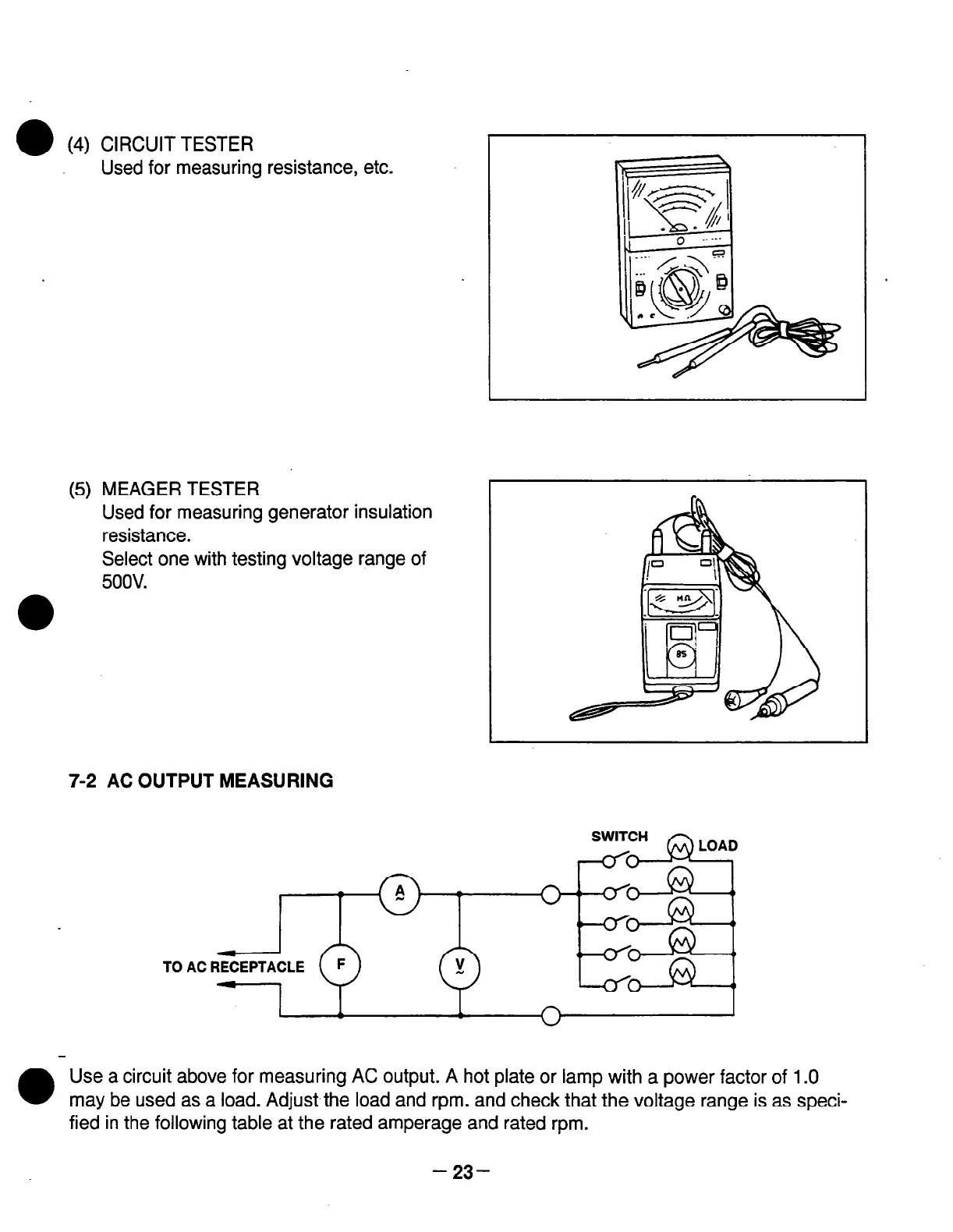may be used as a load. Adjust-the load and rpm. and check that the voltage range is as speci-