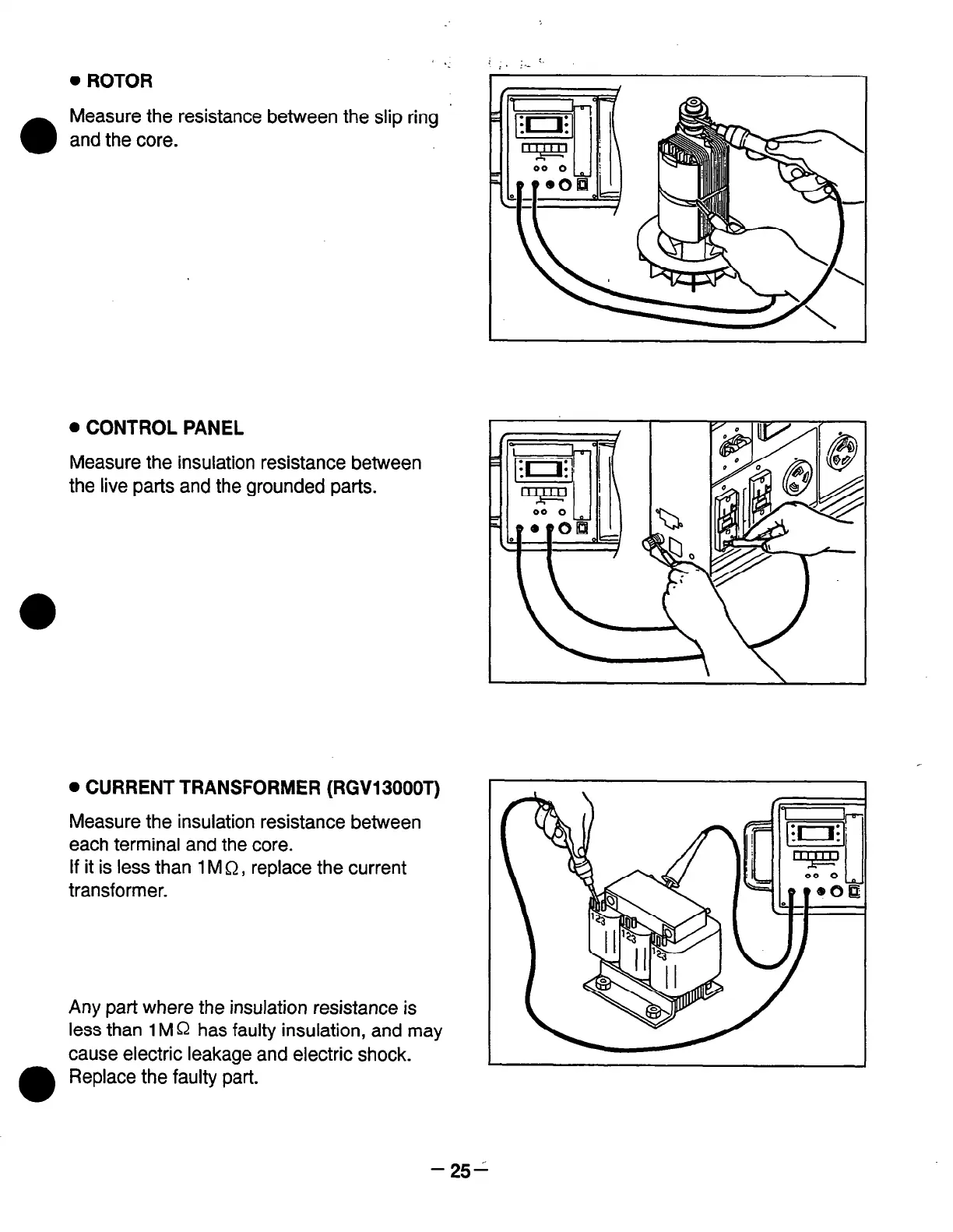 less than 1 M Q has faulty insulation, and may