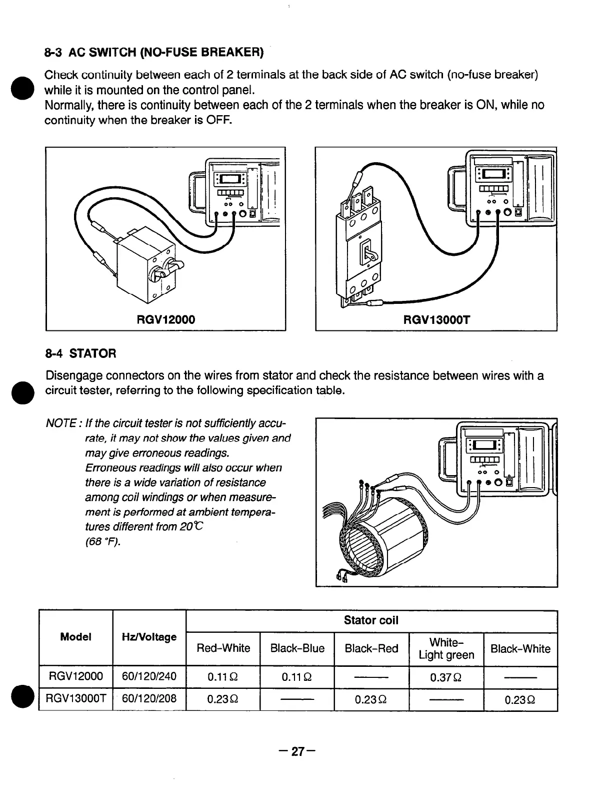 Disengage connectors on the wires from stator and check the resistance between wires with a