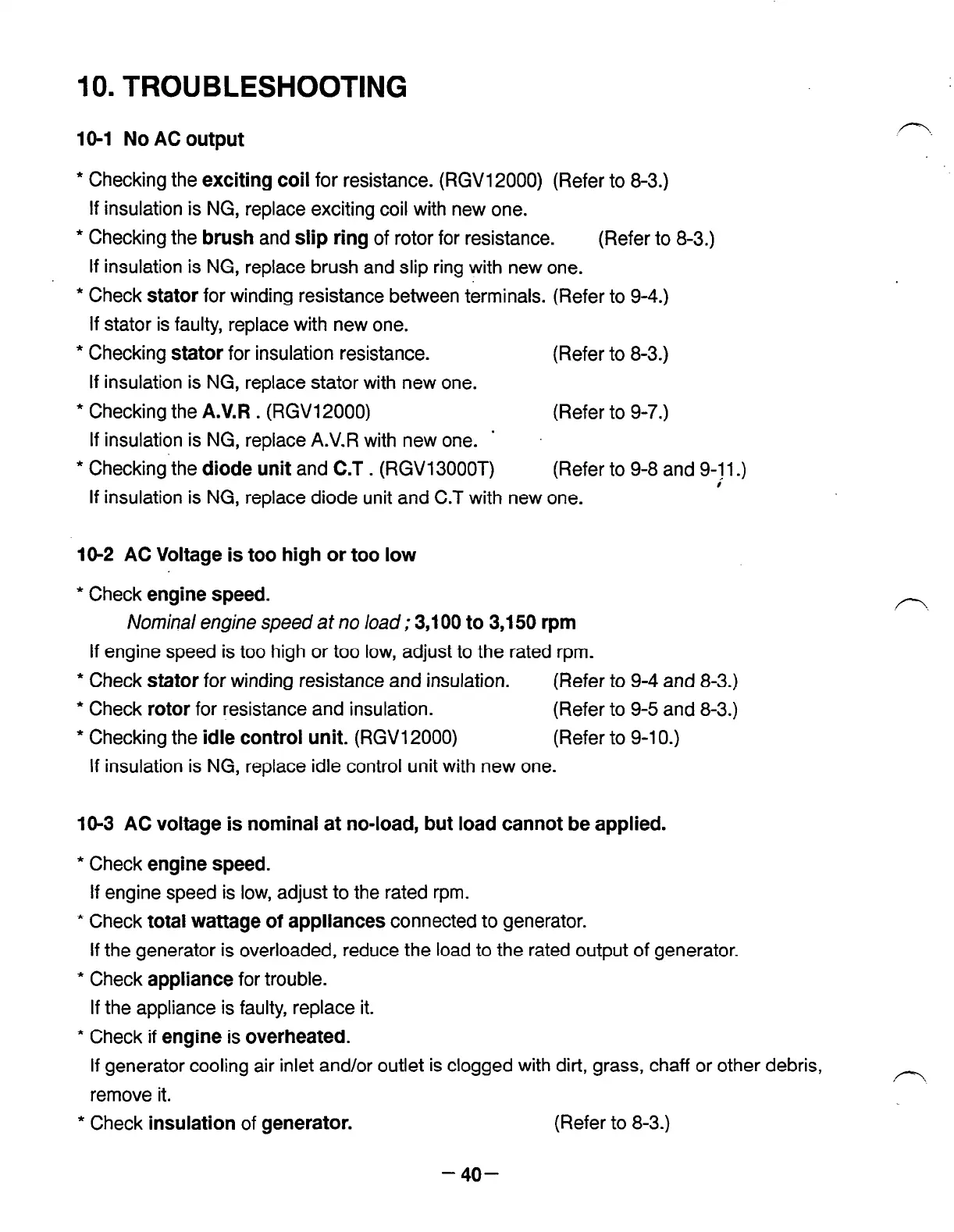 If the generator is overloaded, reduce the load to the rated output of generator.