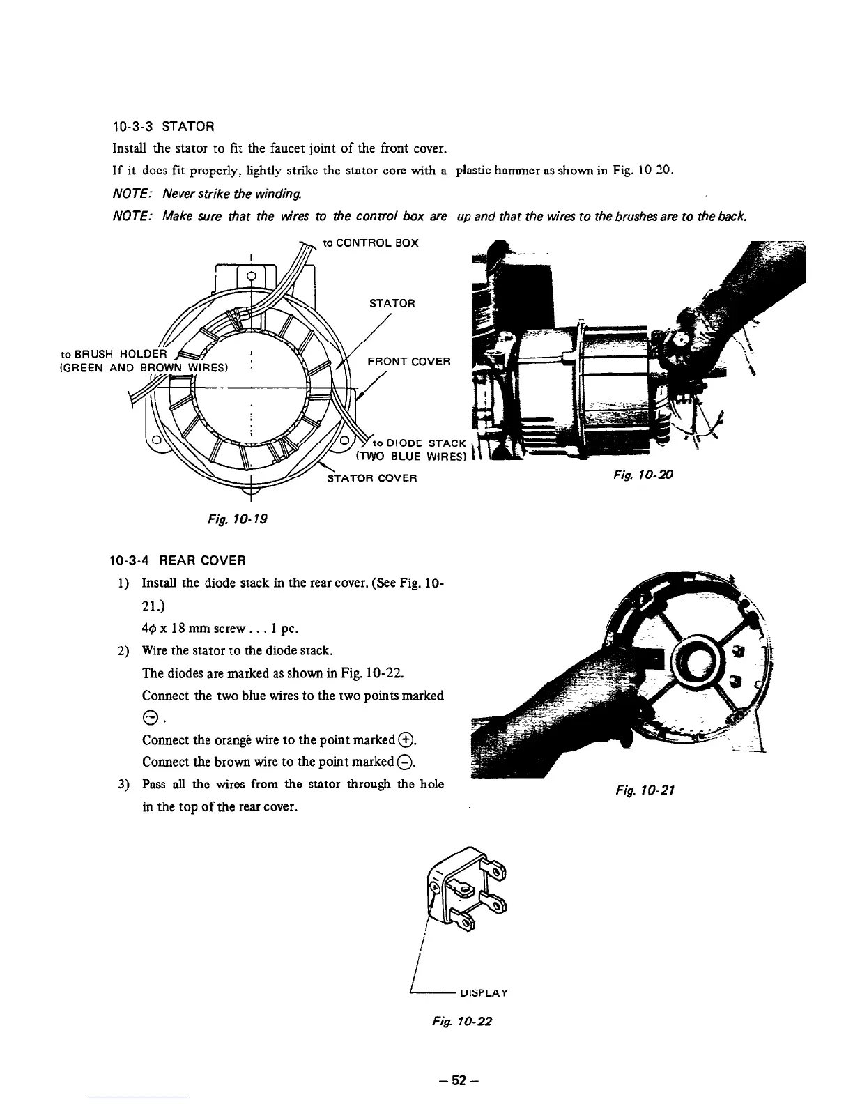 If it does fit properly, lightly strike the stator core with a plastic hammer as shown in Fig. 10-20.