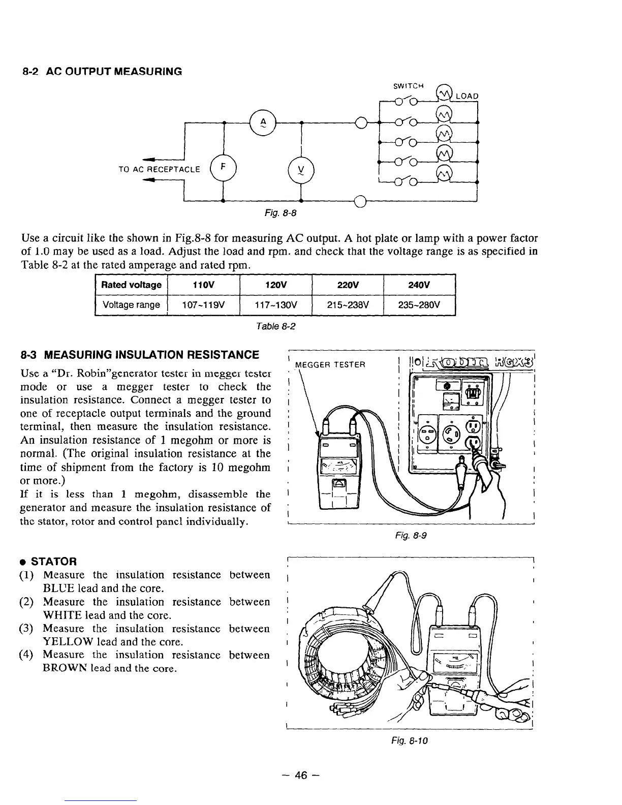 of 1.0 may be used as a load. Adjust the load and rpm. and check that the voltage range is as specified in