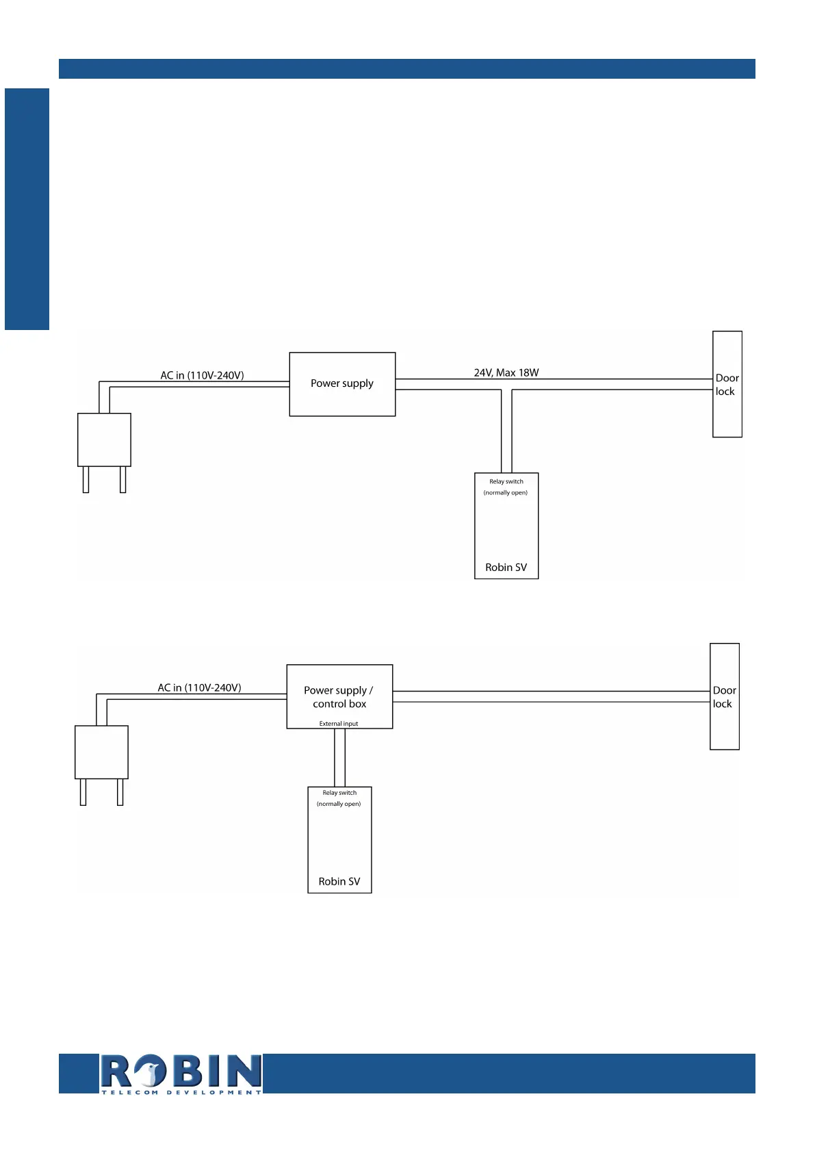 ! Note: The relay switch of the Robin doesn’t supply power for the electronic lock! Make sure that