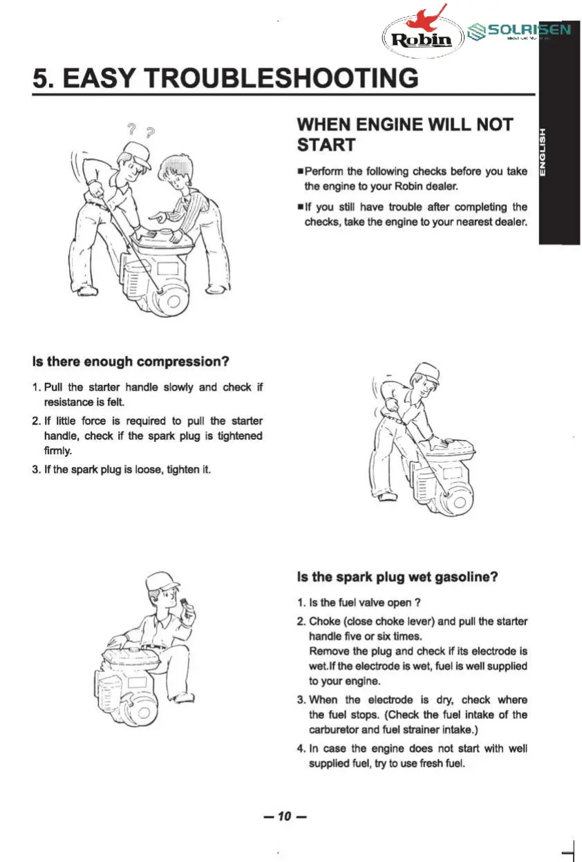 Robin SOLRISEN EY15D - EASY TROUBLESHOOTING; ENGINE WILL NOT START