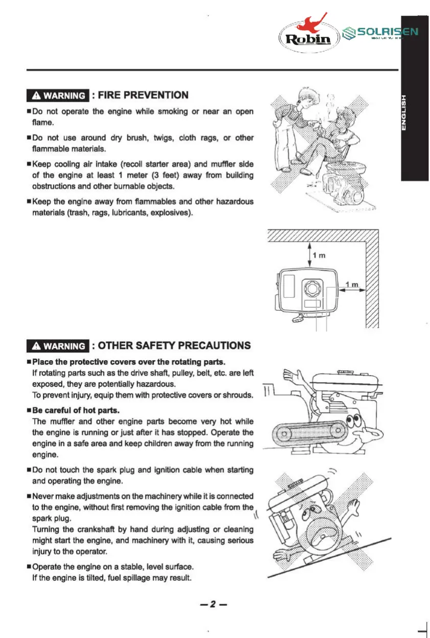Robin SOLRISEN EY15D - FIRE PREVENTION; OTHER SAFETY PRECAUTIONS