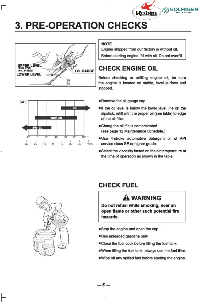 Robin SOLRISEN EY15D - PRE-OPERATION CHECKS