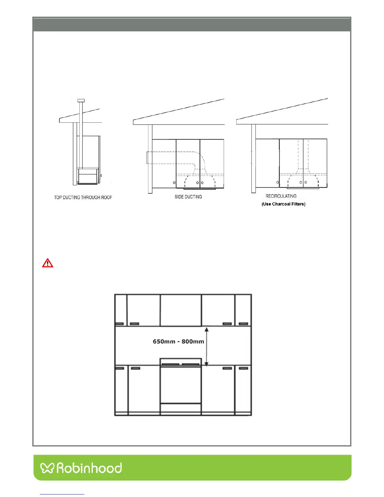 The method of ducting should be carefully considered before installing the rangehood. The guide below