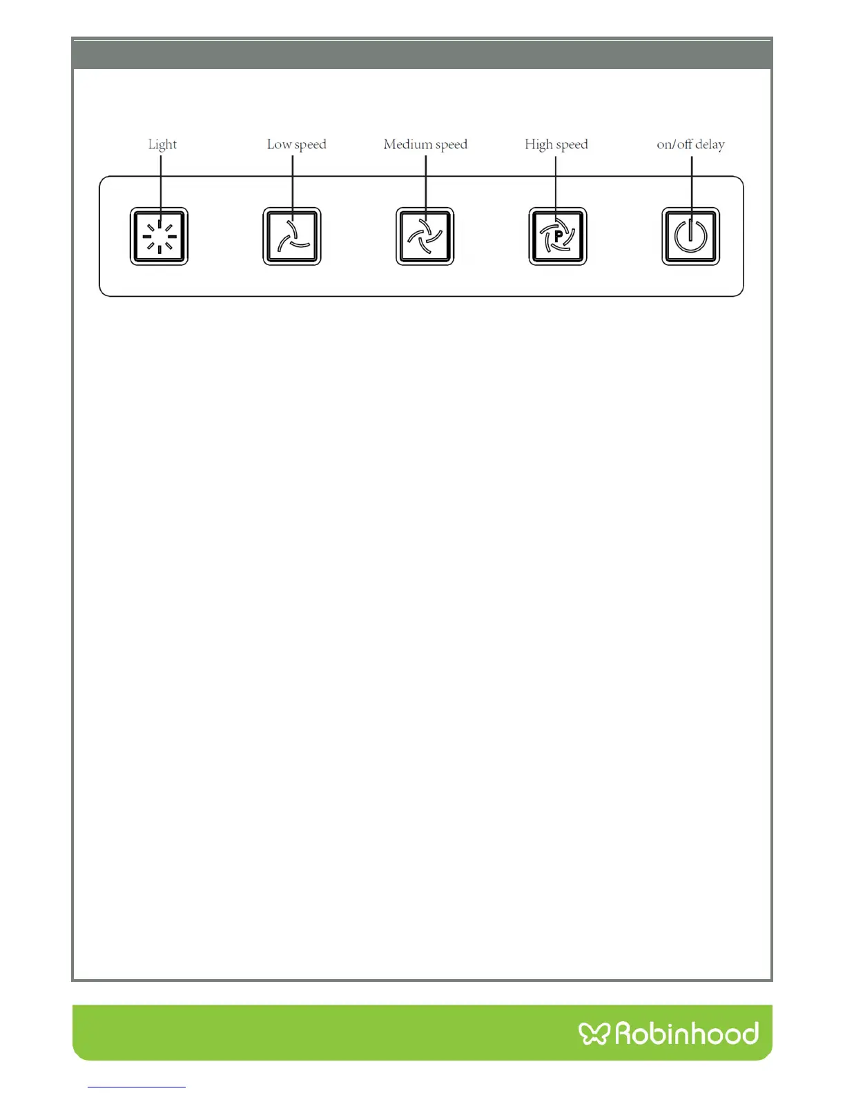 The exhaust fan is operated by the centre three buttons. Pressing any of the three centre buttons will turn on the