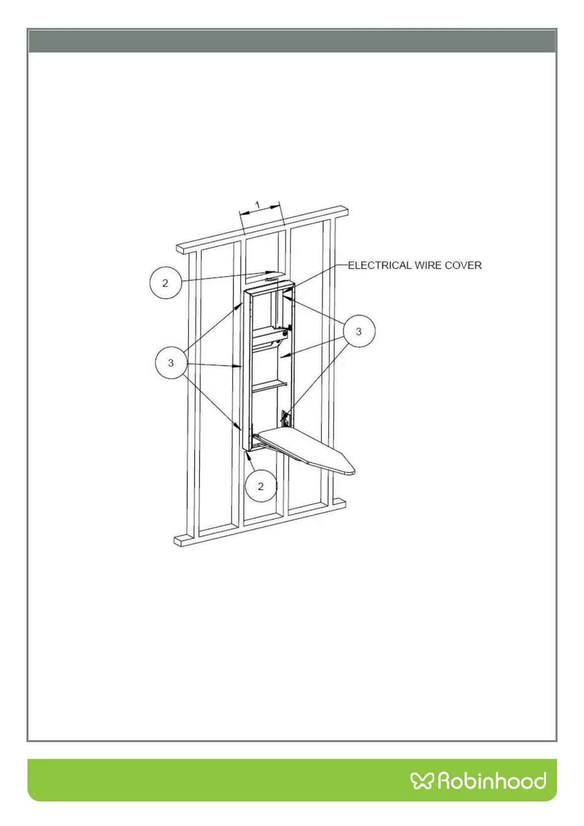 o Make sure sold timber studs or mounting points are in suitable position for the mounting of the ironing centre.