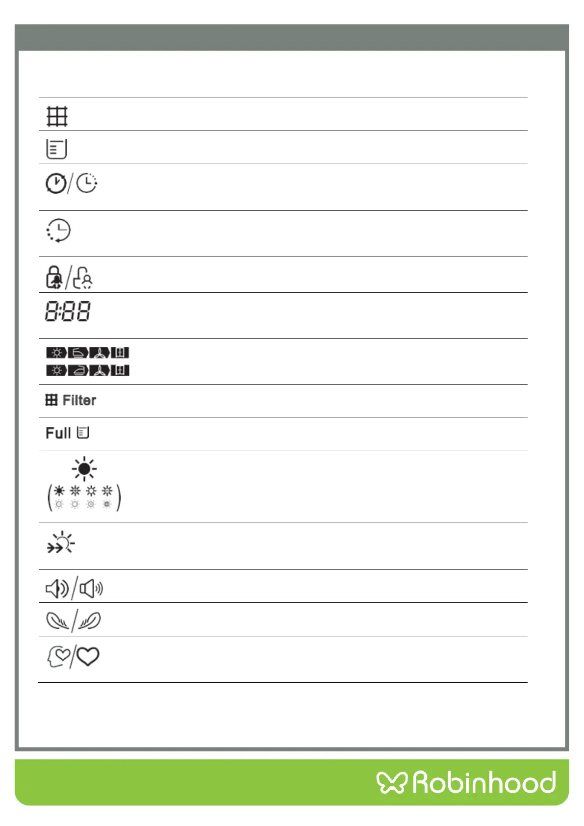 ROBINHOOD RHCD7W - Operation Instructions - Display; Display Icons and Meanings
