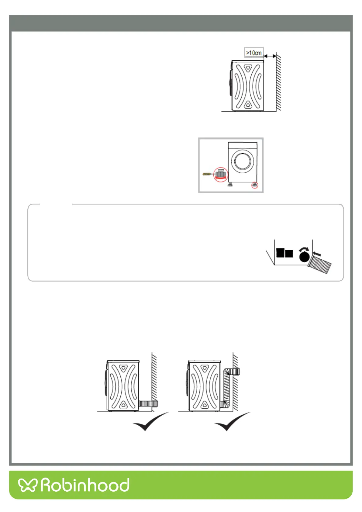 If dryer could not be placed horizontally (the lean angle is no more than 2°, the dryer will work unbalanced
