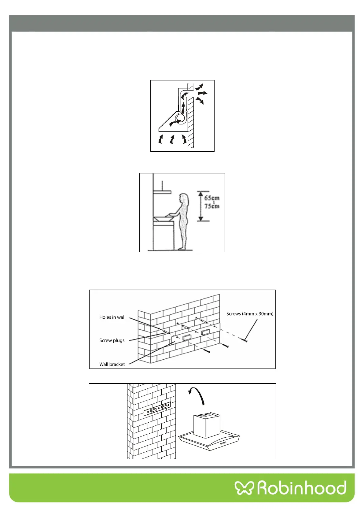 The rangehood must be placed at least 65cm above the cooking surface. For best effect, do not install the