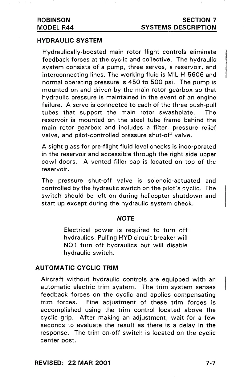 Robinson R44 - Hydraulic System; Automatic Cyclic Trim