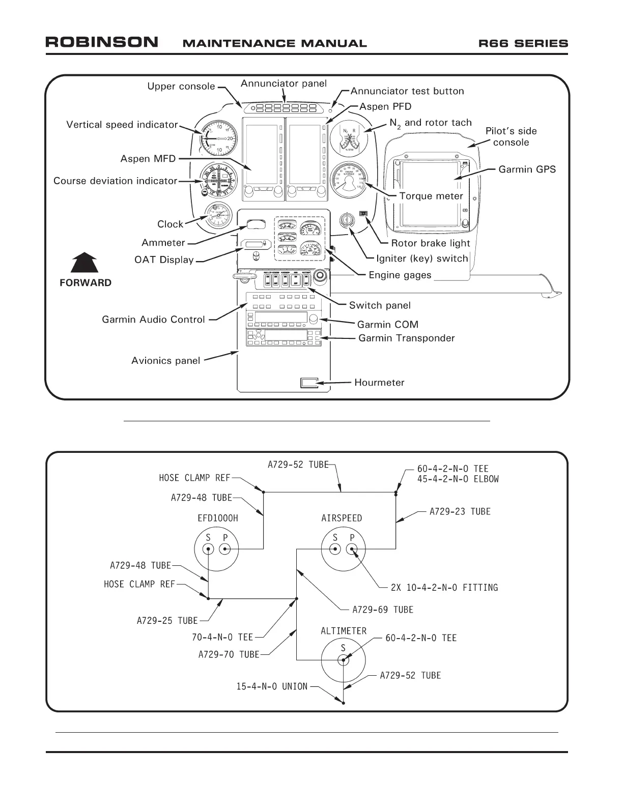 FIGURE 95-11 EIGHT-INSTRUMENT CONSOLE WITH ASPEN PFD AND MFD PITOT-STATIC SCHEMATIC