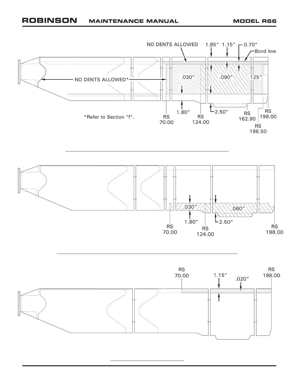 FIGURE 62-12 DENTS ON TRAILING EDGE BOND JOINTS - DAMAGE LIMITS
