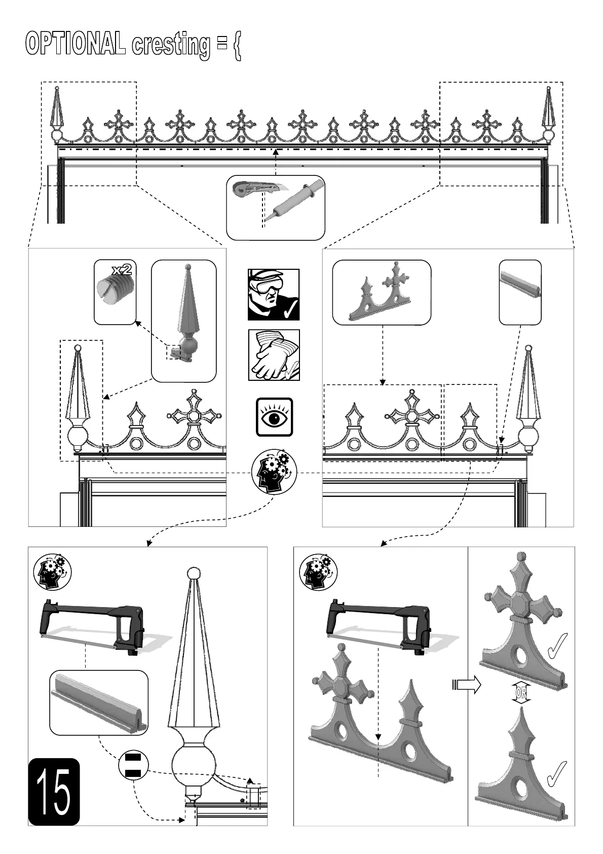  Each finial and cresting piece needs to be siliconed ‘D119’ into place.