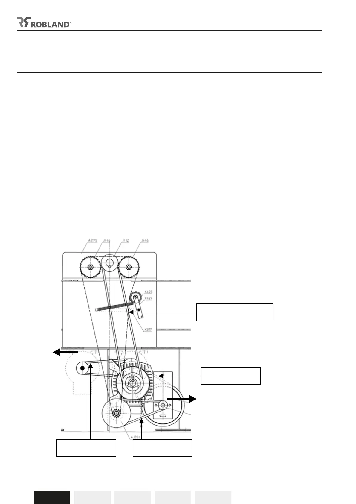 De riem (D) wordt ontspannen door de bouten van het lagerhuis op de andere zijde