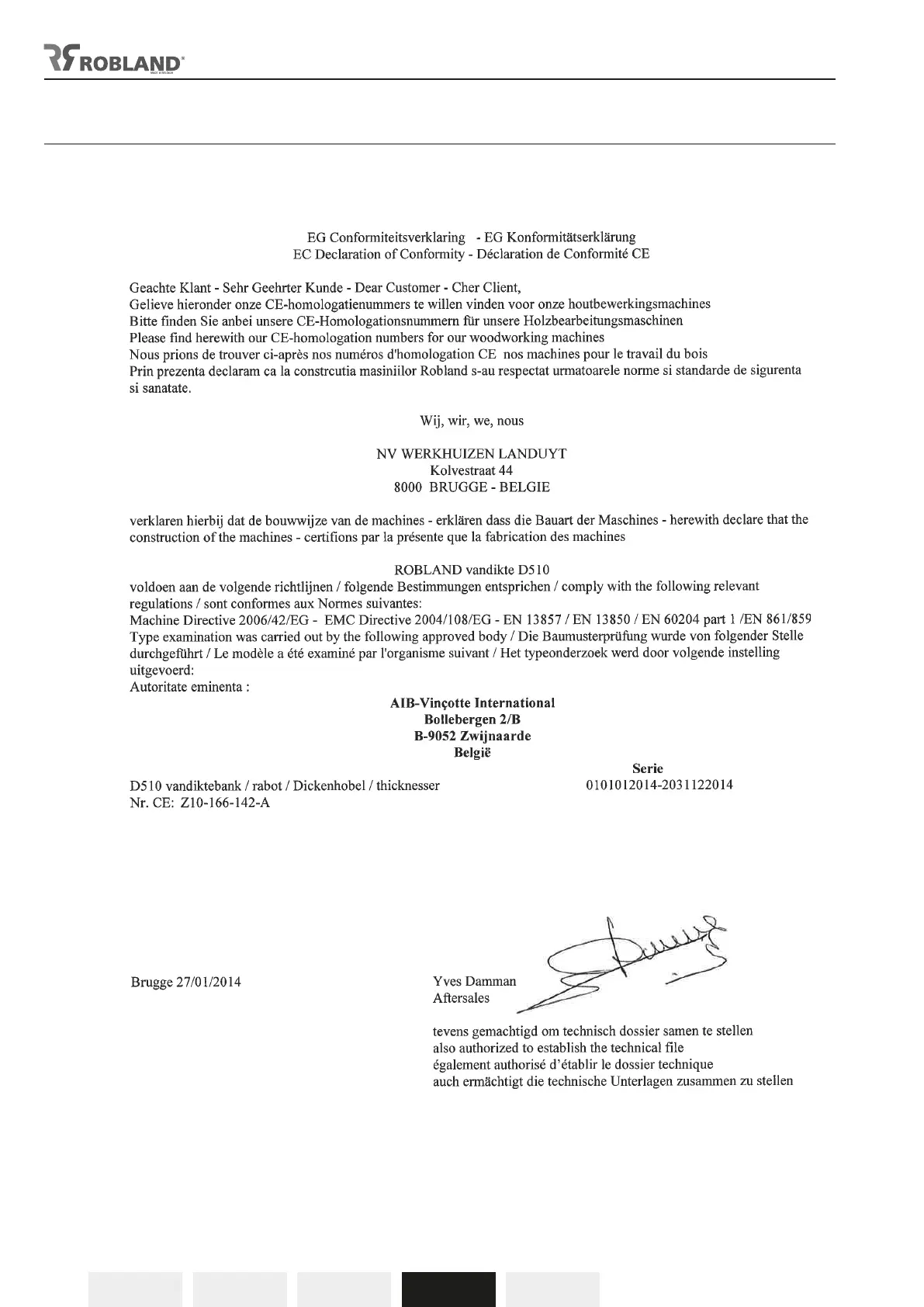 Robland D 510 - CE-Zertifikat