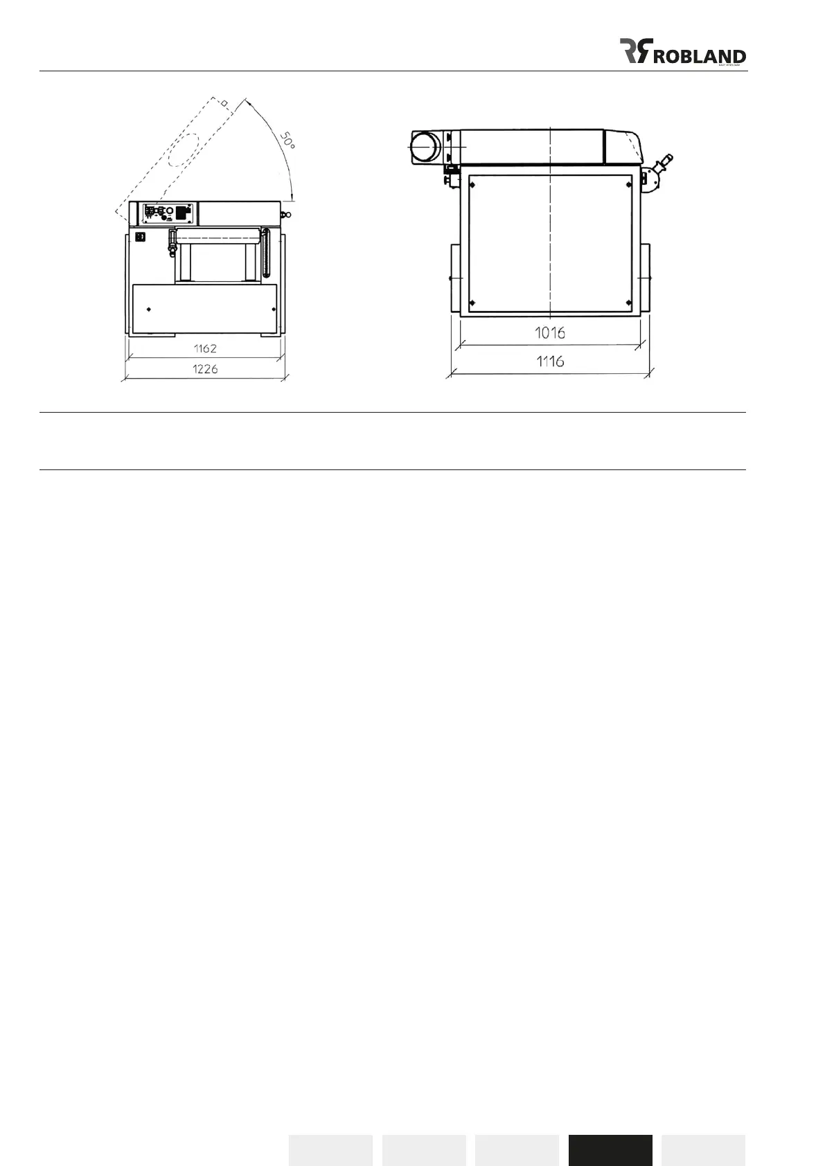 Dimensions table raboteuse mm 630x1160