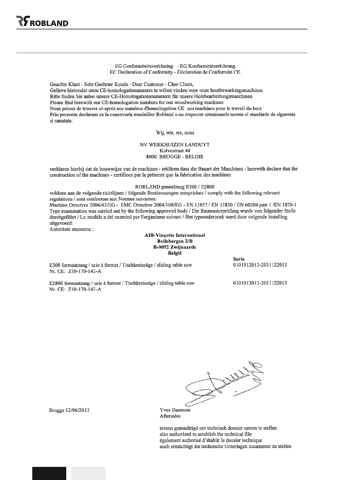 Robland E300 - CE Declaration