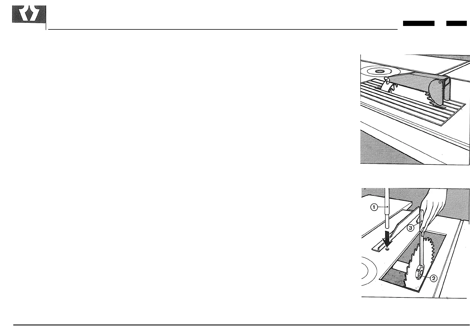 Clearthe table free of all accessories. To fix the saw blade you must black it and stretch wit nut (fig. 2) using the special key