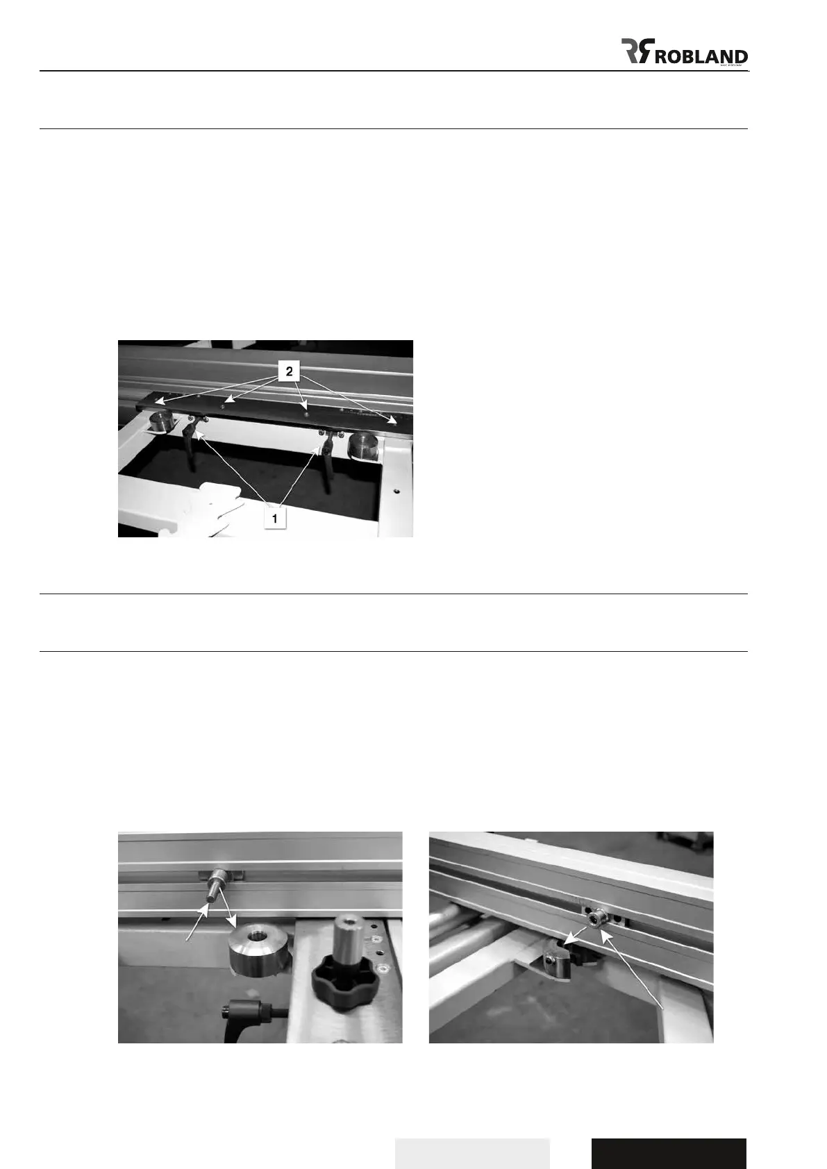 (2) and shifting the complete cross-cut table. Make sure these 4 bolts are well tightened after the