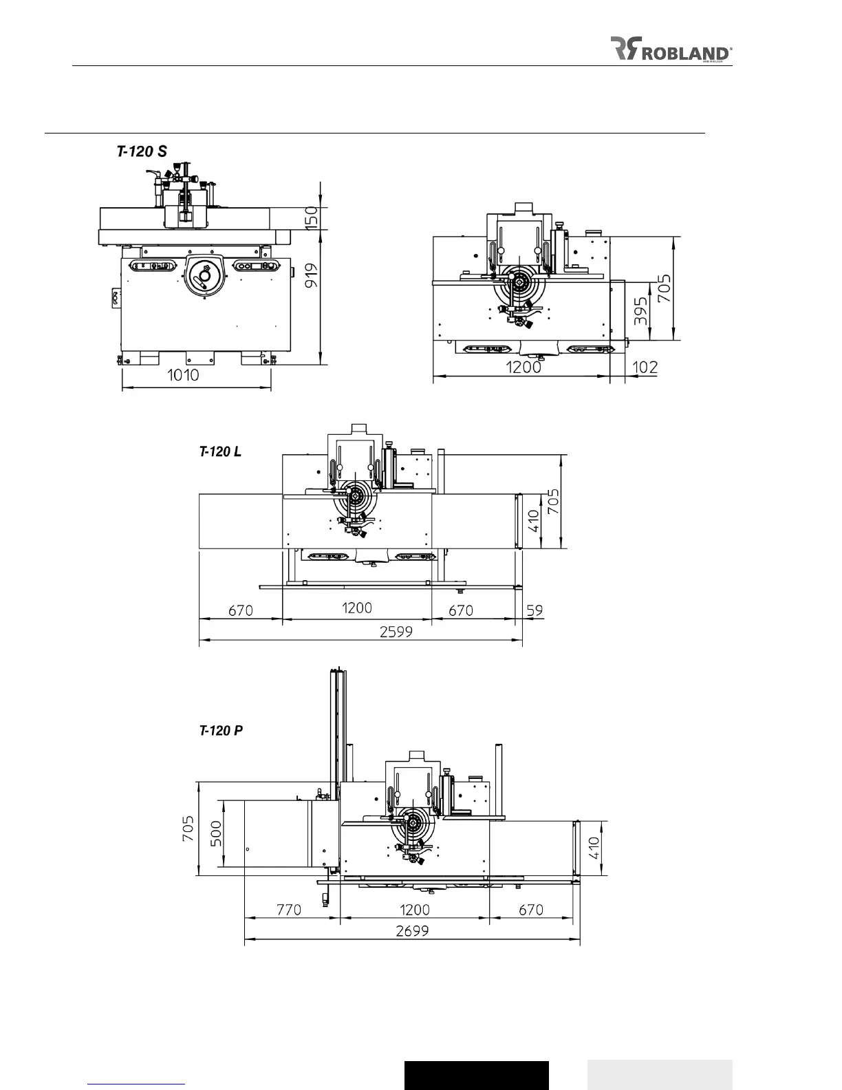 Robland T120 - Allgemeiner Abmessungen T-120