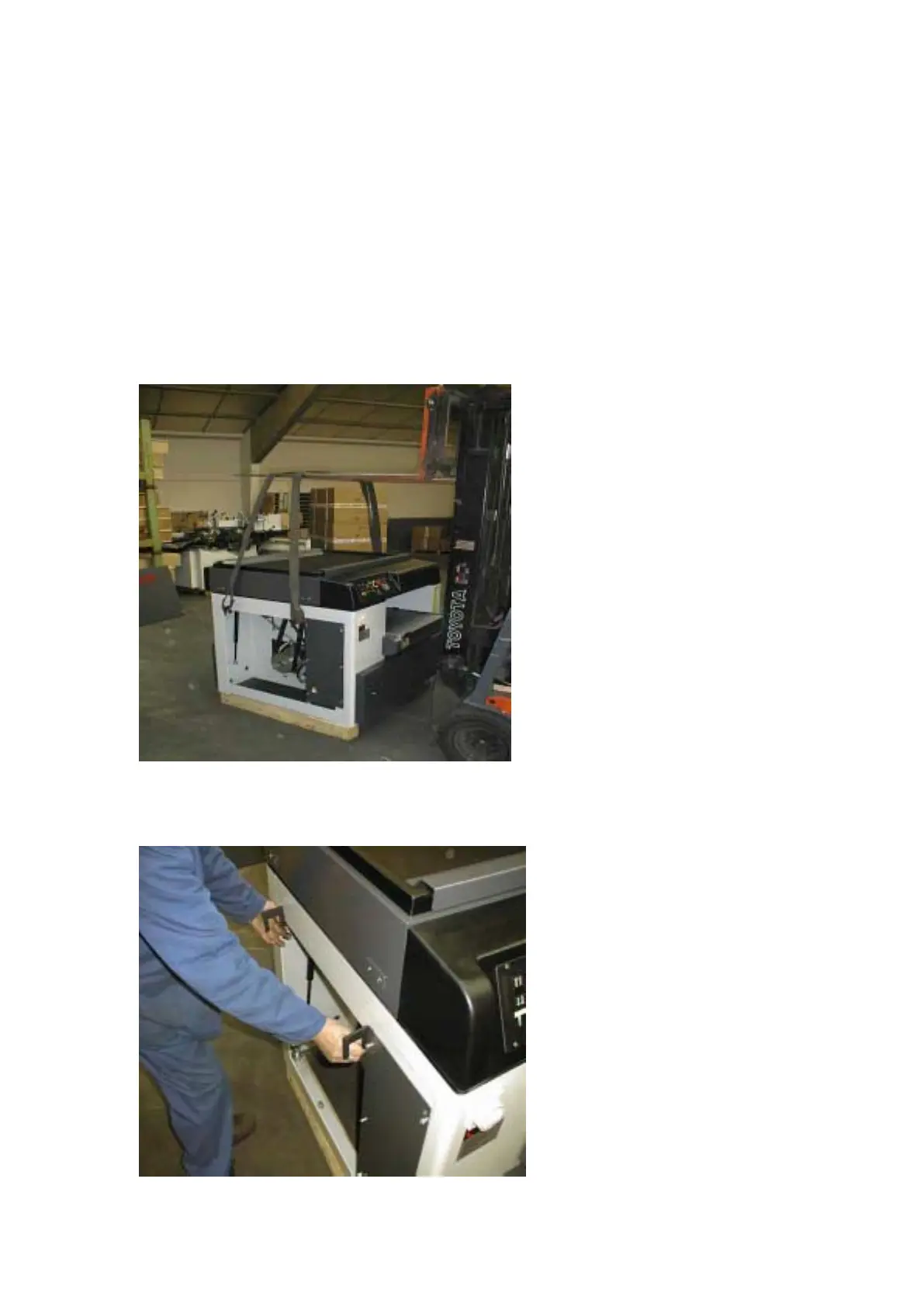 The machine can be lifted with a small crane, or a forklift, but severe shocks must be