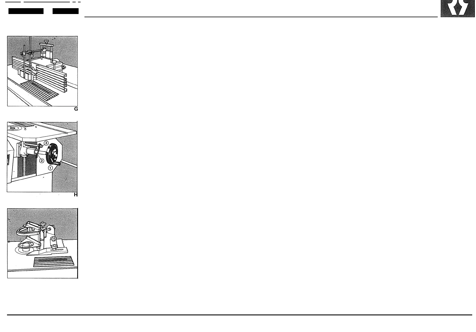 puis reserrez Ie boulen. La mise en place des guides et des protections de la toupie ne pose aucun problème, comme