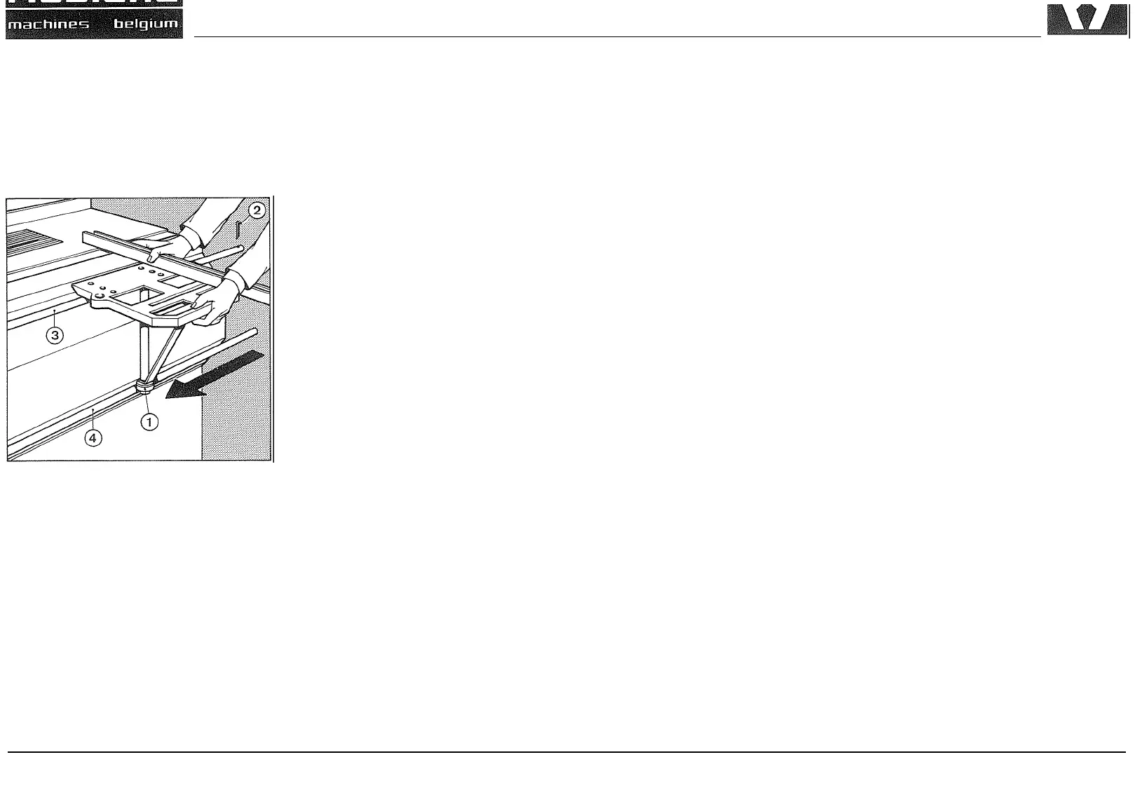La hauteur et Ie parallelisme sont réglables par l'intermédiaire des vis de réglage dans les barres de guidage (3 en 4).