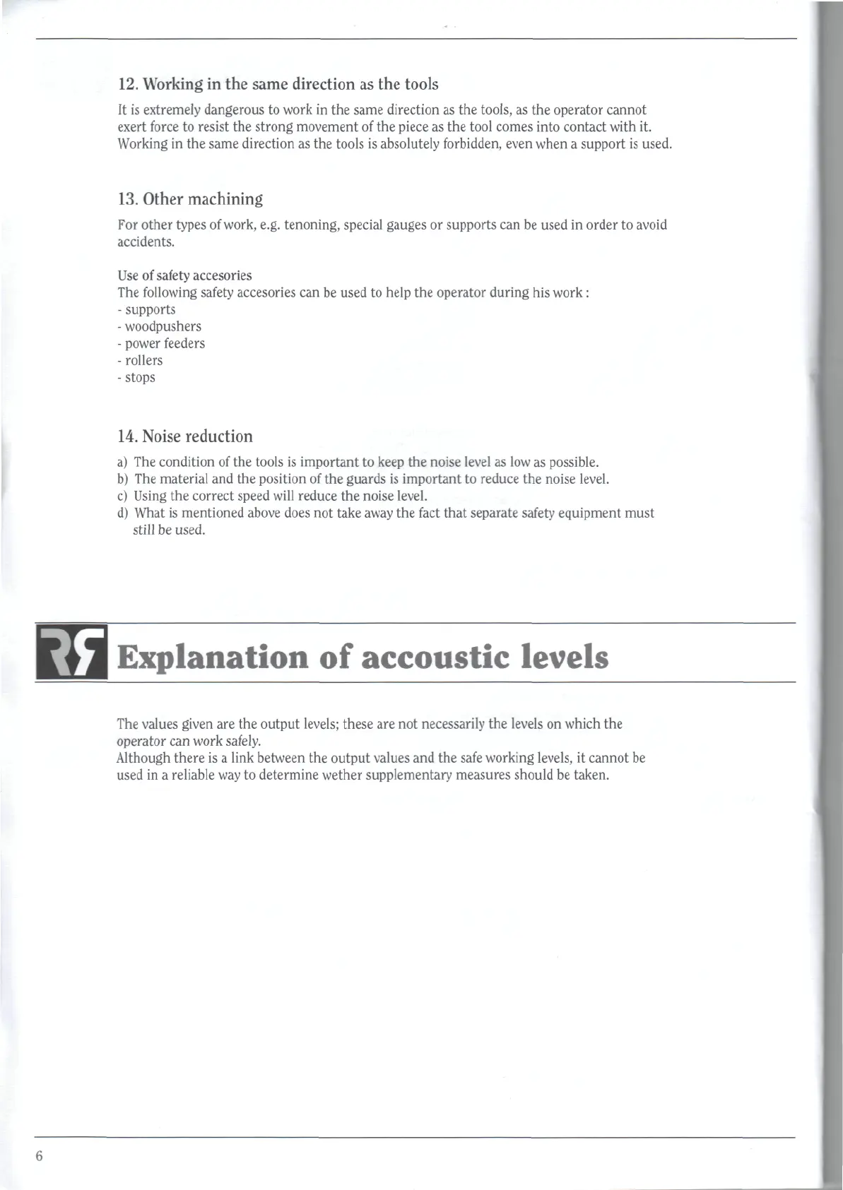 Robland X260 - Explanation of Accoustic Levels