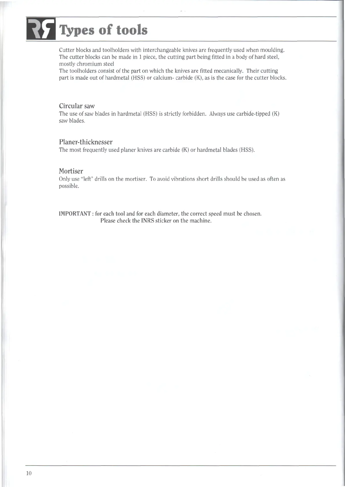 Robland XTZ30 - Types of Tools