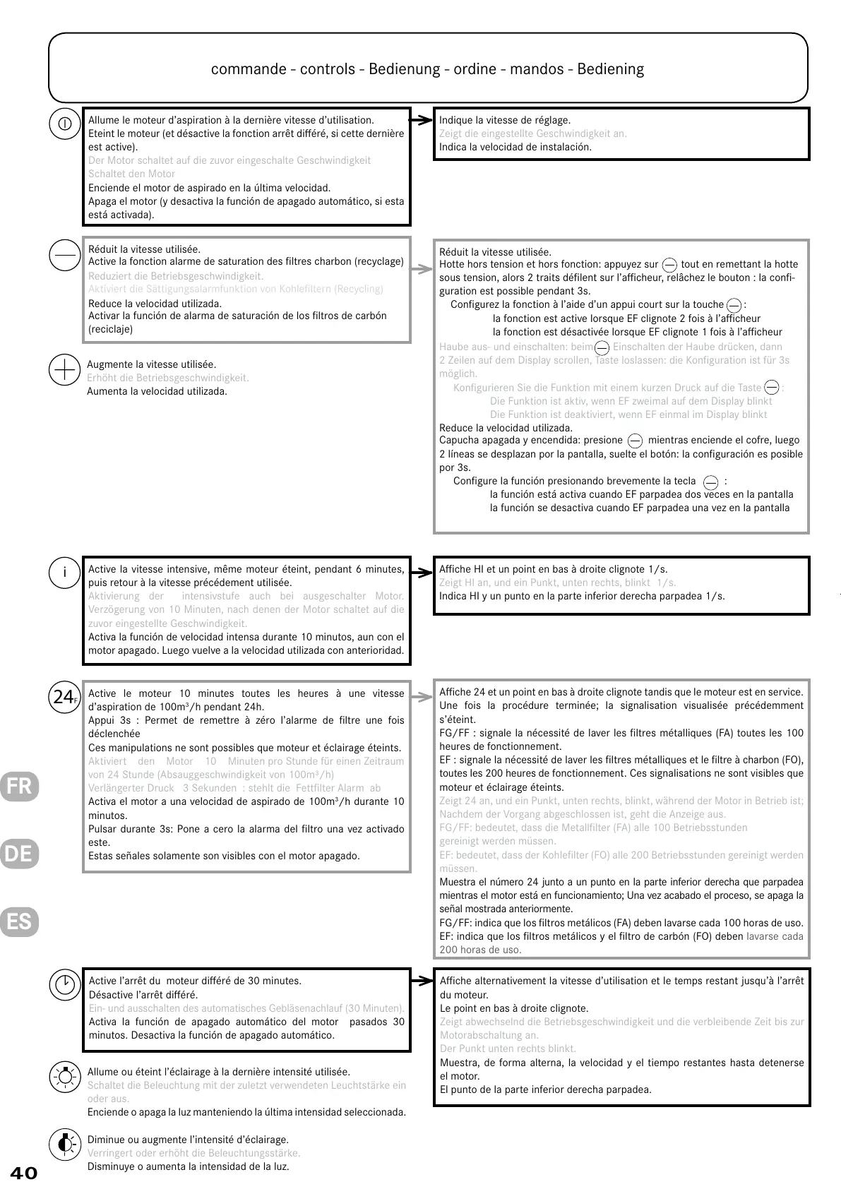 FG/FF : signale la nécessité de laver les filtres métalliques (FA) toutes les 100