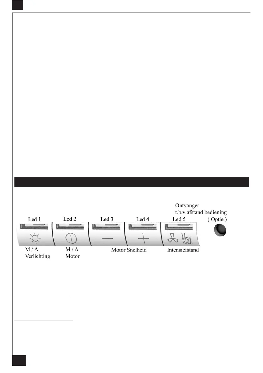 Druk op de “+” toets (de motor en de verlichting zijn uitgeschakeld - ‘OFF’) totdat de 5 ledjes één keer