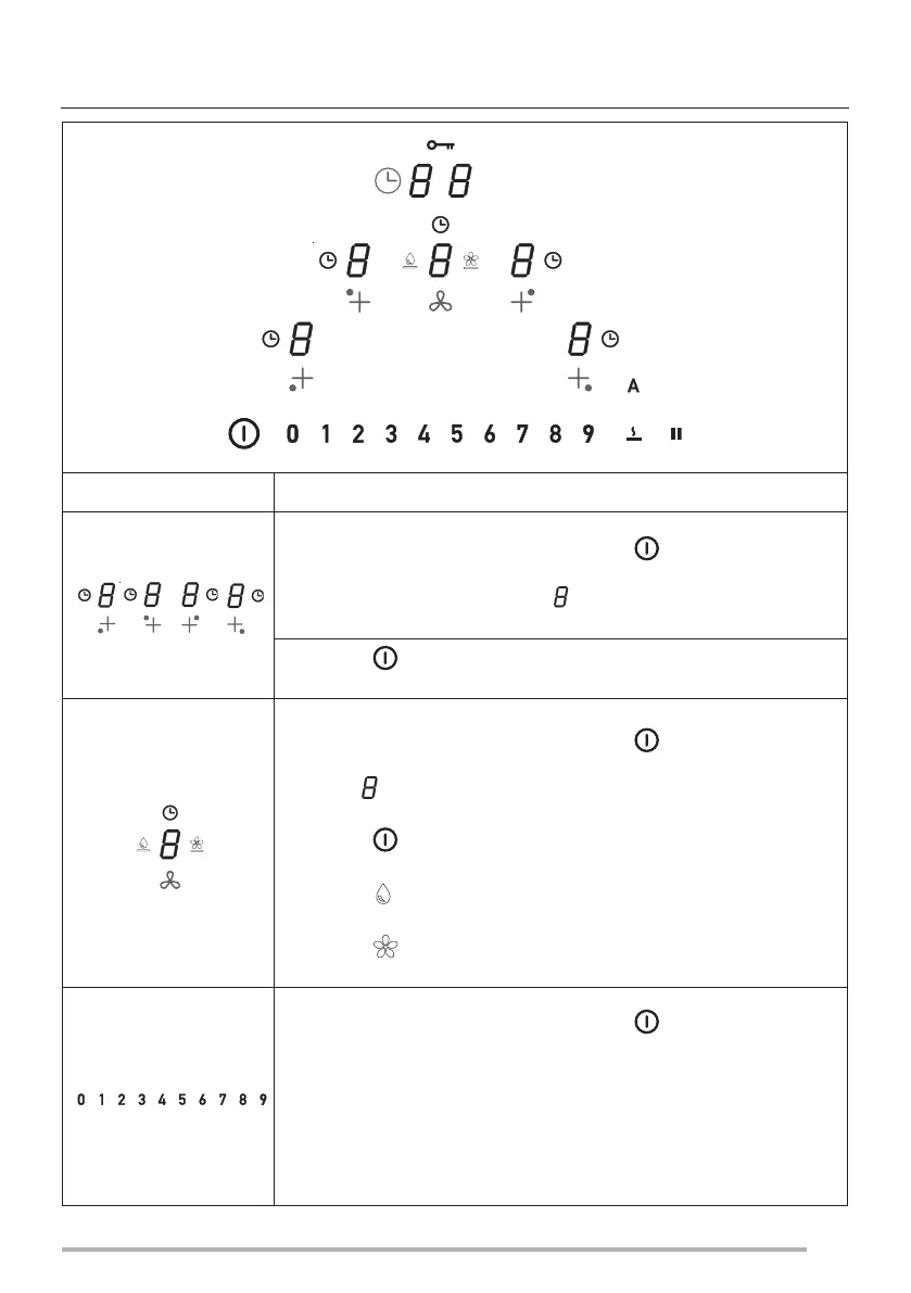 Wahl der Leistung für Kochbereiche und/oder Geschwindigkeit des Abzugs