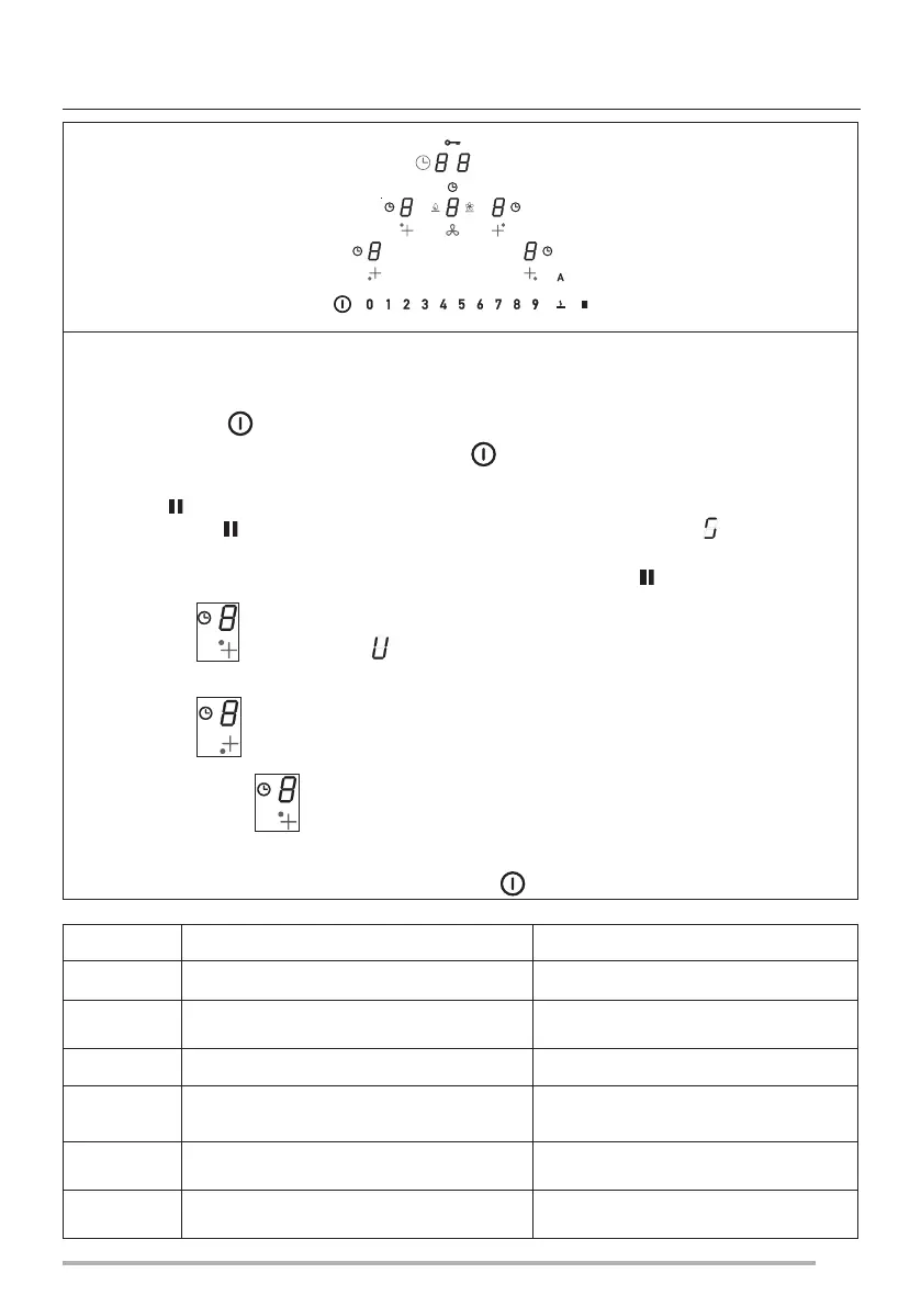 - Halten Sie die Taste gedrückt und drücken Sie die 4 Zifferntasten der Kochbereichen ( ) nacheinander im