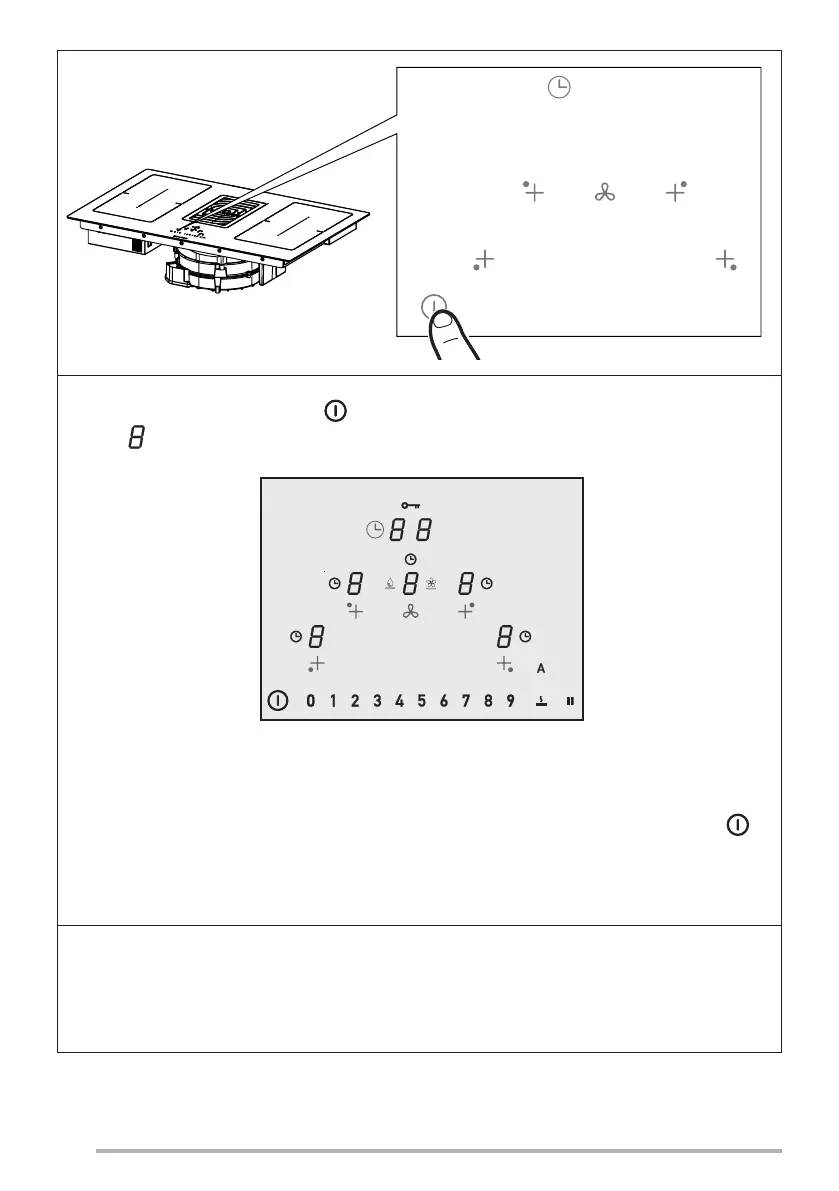 In questo momento il piano è acceso ma tutte le zone di cottura e la cappa sono a potenza zero. Il Piano