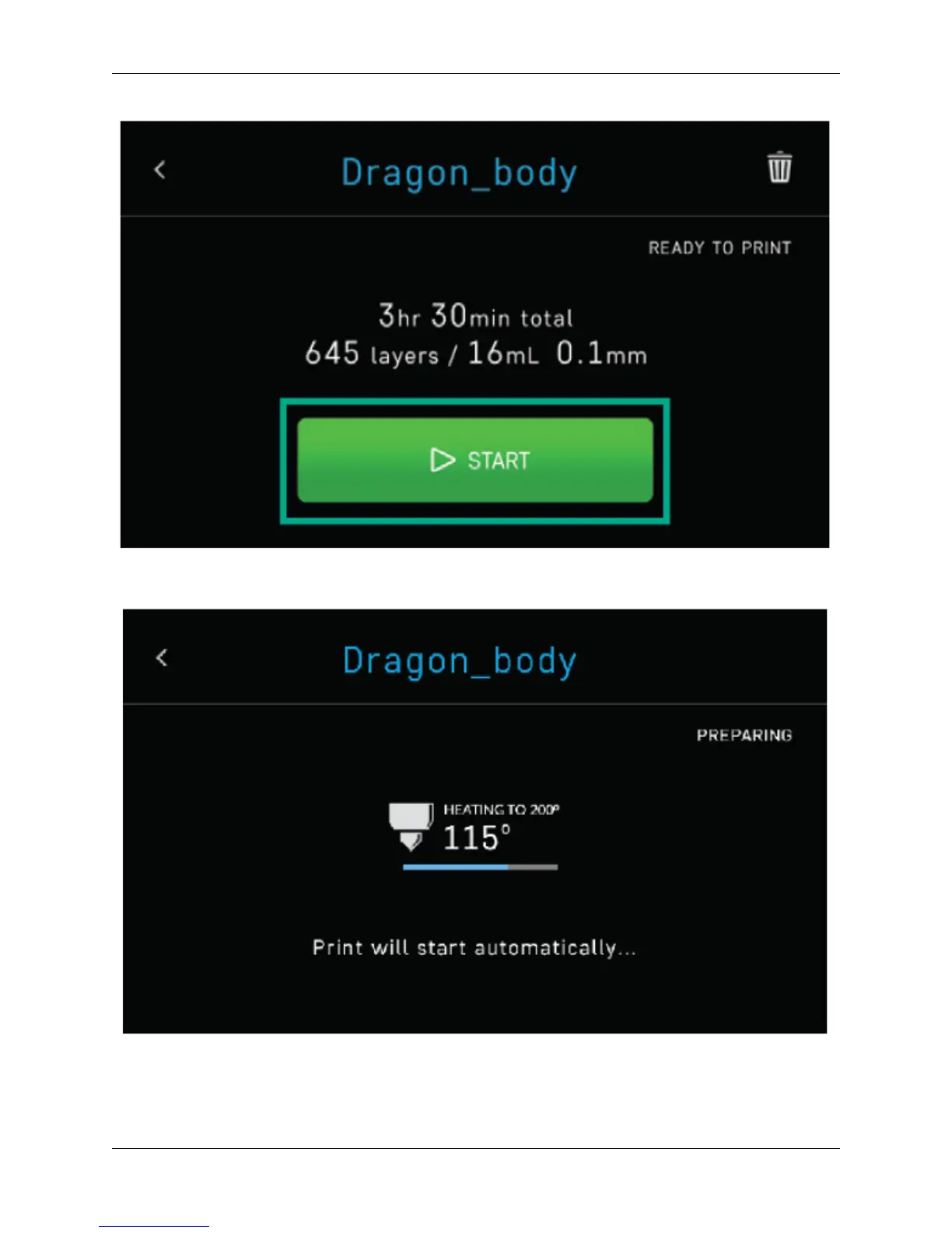 The file will start printing.