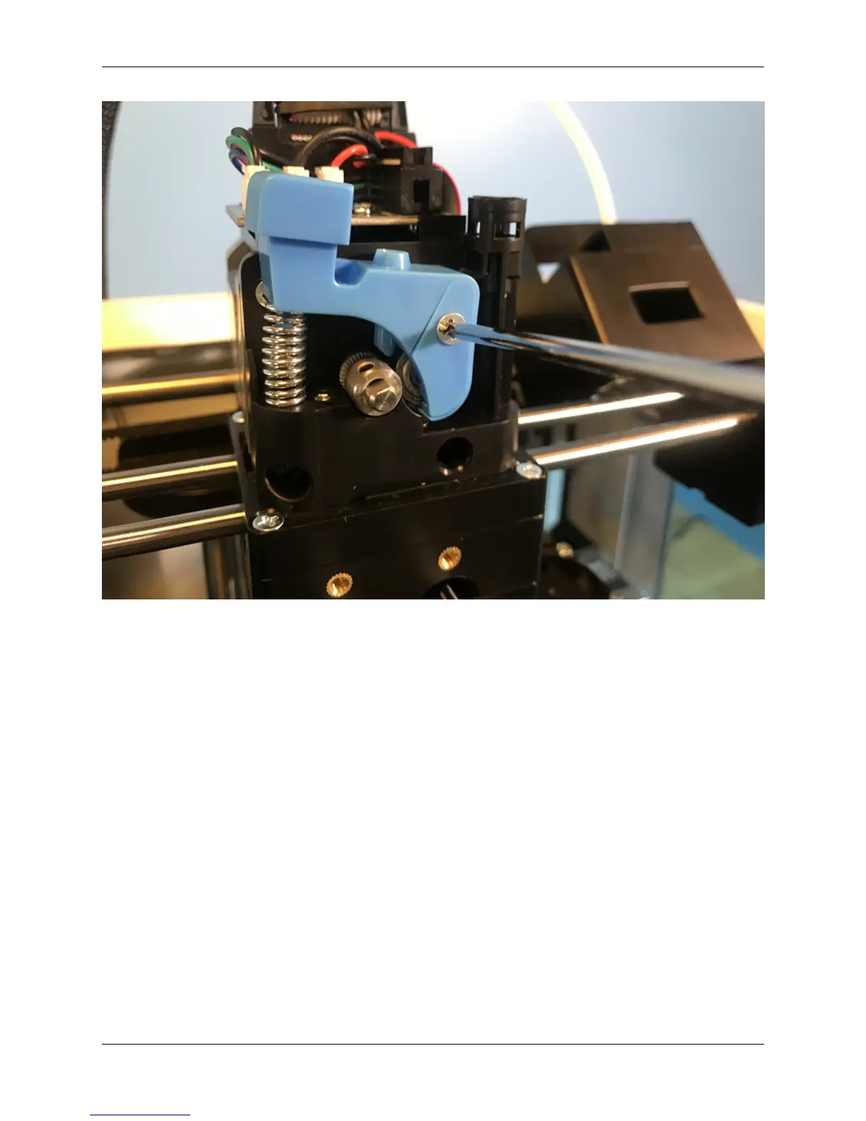 Take the allen wrench that came in your tool kit, and unscrew the bolt connecting the extruder tensioner to the