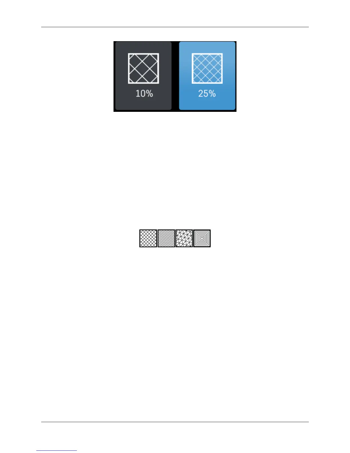 • Lines: Creates a grid shaped infill, printing in one diagonal direction per layer.