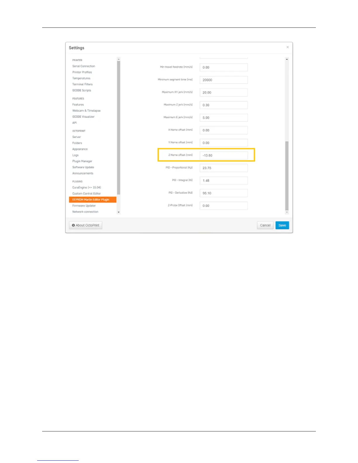 From here, you will need to scroll back to the top of the page and select ‘Save to EEprom’ to correctly save the value to